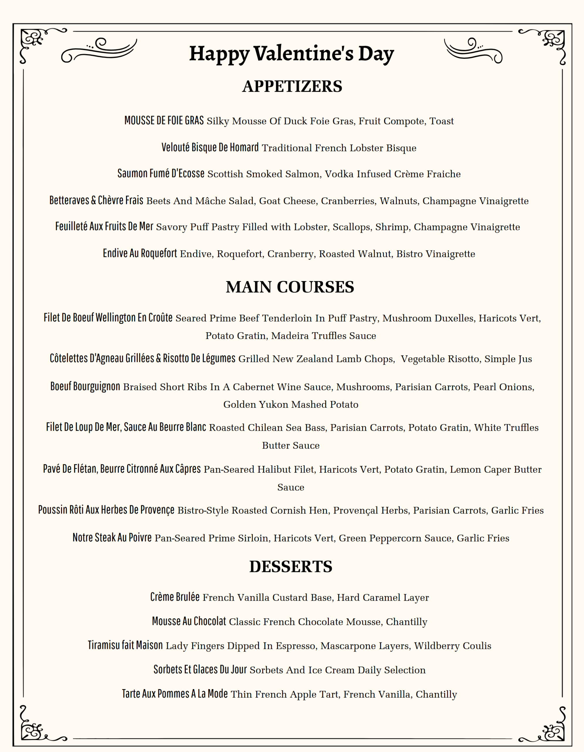 Valentine's Day Menu